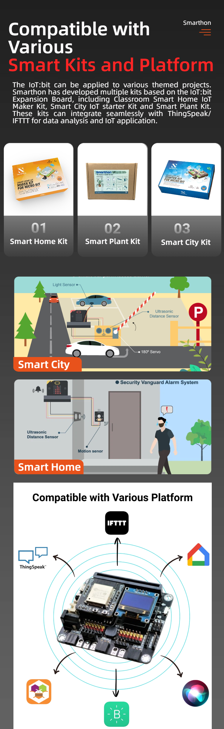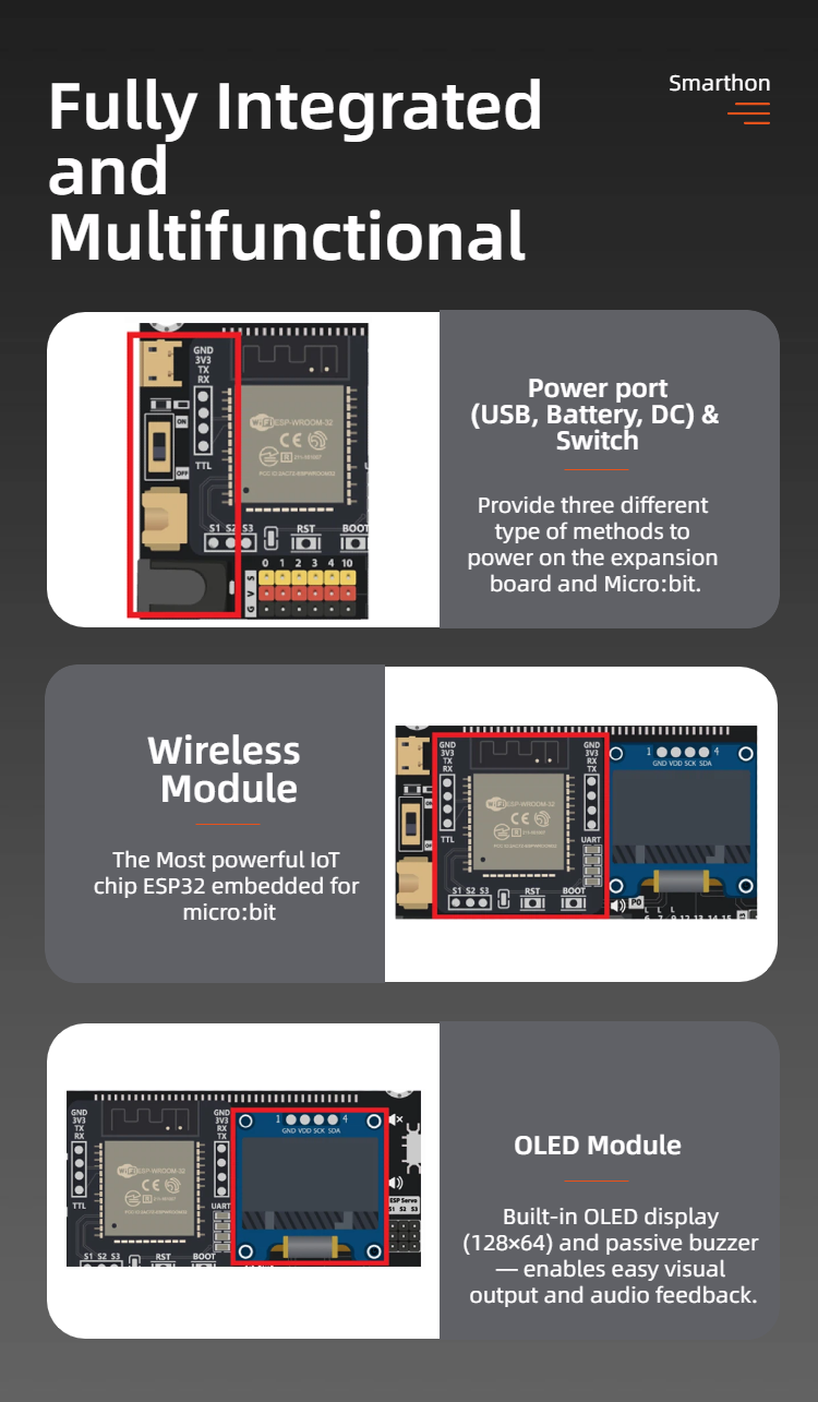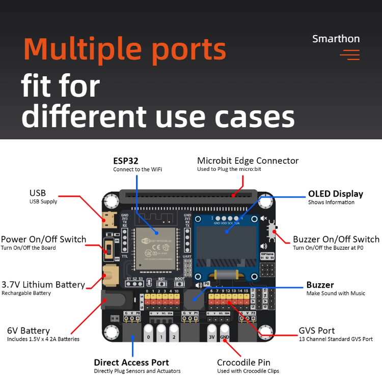 Smarthon IoT Bit is an IoT orientated expansion board for Micro:bit. With the help of this, Micro:bit able to connect to different sensors or actuators without welding and start to use the internet services.