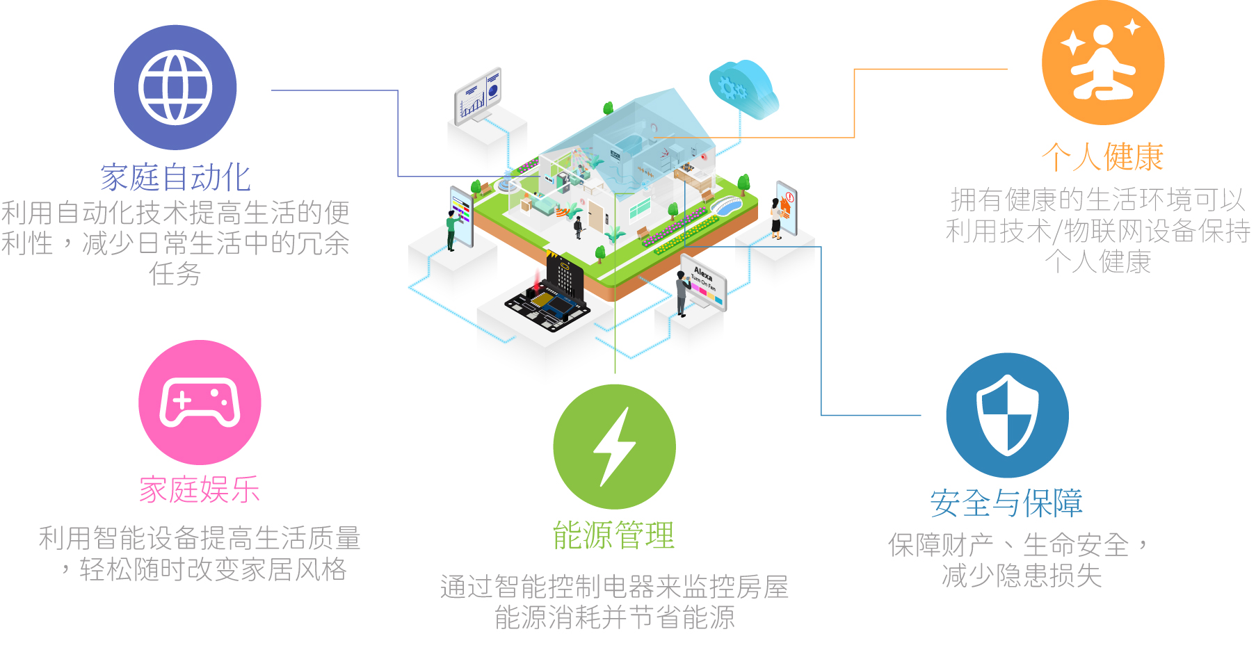 你曾想像过如何设计自己的智能家居吗?智能家居涵盖范围主要可分成 5 大类,包括自动化 、保安 、家居娱乐 、健康及能源管理。在本套装里面包含12个案例,由简单至物联网程度,包括人行感应器LED灯和家庭健康数据监控系统等,应用于家居的不同位置如客厅、睡房、厕所、厨房及门位置。