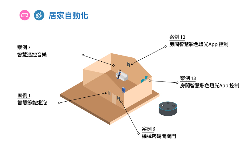 「密碼自動門」只需要輸入正確的密碼,即可為用戶開門;「智能燈泡」會根據屋內的活動,自動開關,無需再手動按掣;「智慧遙控」允許您使用單個無線電控制器進行控制,如:透過Alexa 語音控制風扇,您只需使用語音即可控制風扇;「智能遙控燈泡」可讓您透過手機應用程式(APP) ,輕鬆地控制屋內燈光。